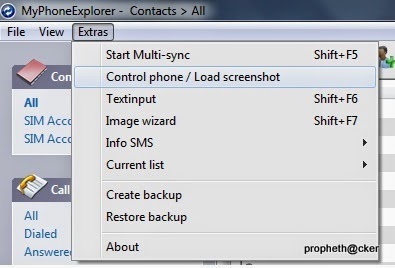 5. Click on Extras then Control Phone/Load Screenshot.Now you see that your phone screen is appear on your Desktop.Now check the button Refresh Automatically.